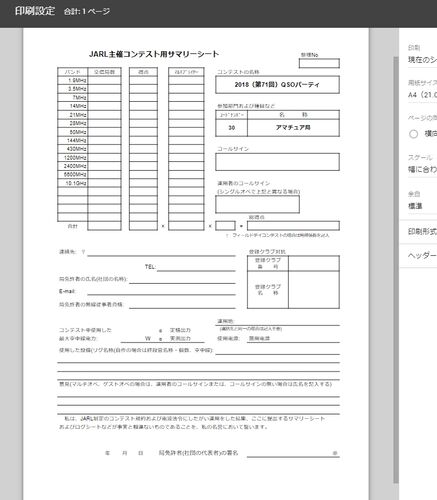 例年〆切ギリギリの提出だったので、今年は余裕をもって準備しました。これまでは JARL から PDF 型式のログとサマリをダウンロードして使ってましたが、毎年のことなので、今年は無料で使える Google ドキュメントのスプレッドシートでログとサマリを作り直…