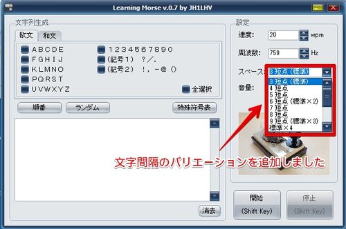 Learning Morse の BugFix です。ブログのコメントに対するプログラム修正になります。国際モールス符号では、文字間隔は短点3つ分(文字間)、語間隔は短点7つ分(単語間)をあけて区別する、となっています。コメントの書き込み情報によれば、短点 0.06sec…