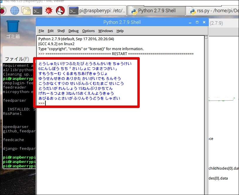 とりあえず、Raspberry Pi Zero W の Python IDLE で、ちゃんとニュースが取得できるかどうかだけはチェックしてみました。