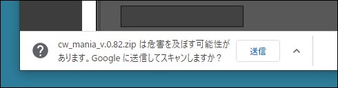 お使いのブラウザが Google Chrome の場合、ファイルのダウンロードで以下のような画面が表示されるので、セキュリティが気になる方はそのまま "送信" をクリックして Google でウイルスチェックをしてもらうと安心できると思います。
