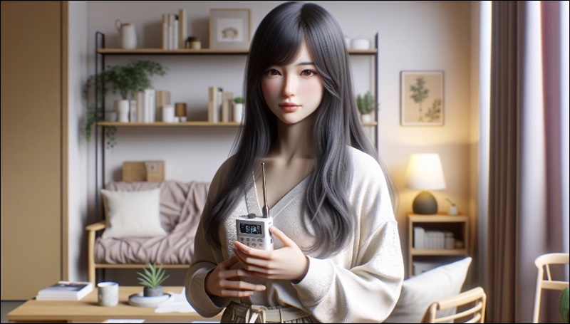 女子の一人暮らしの部屋で盗聴波探索をしている(イメージ)