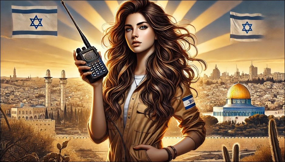 平和を祈りながらハンディ機で交信しているイスラエルの YL ハム(イメージ)